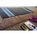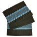 Mostly chocolate brown with baby blue Indian detailed stripes at top and bottom of rug.